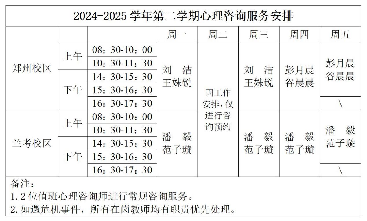 关于开展2024-2025学年第二学期心理咨询服务安排的通知